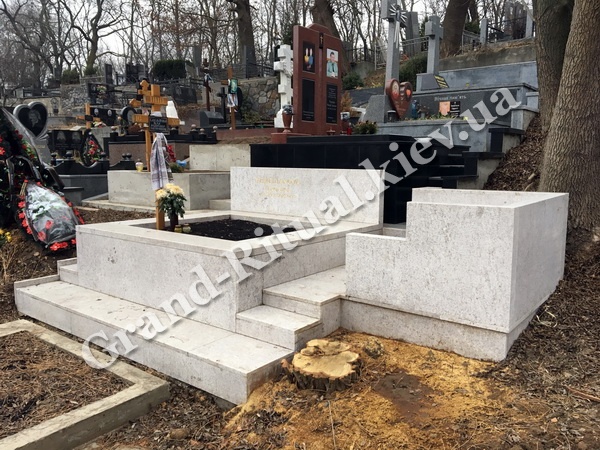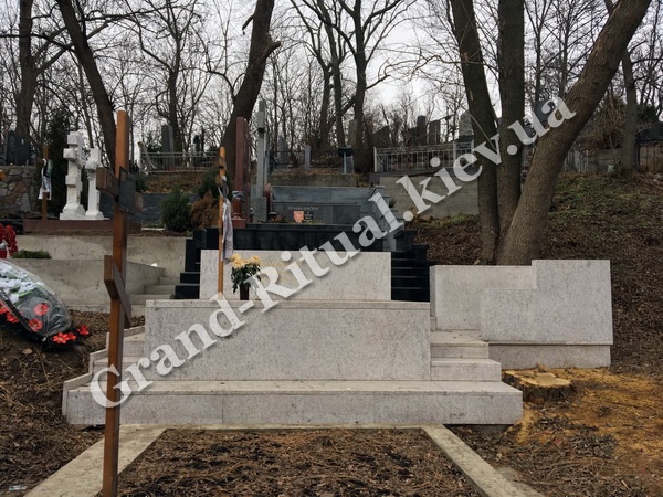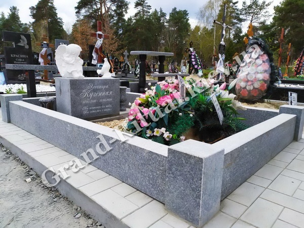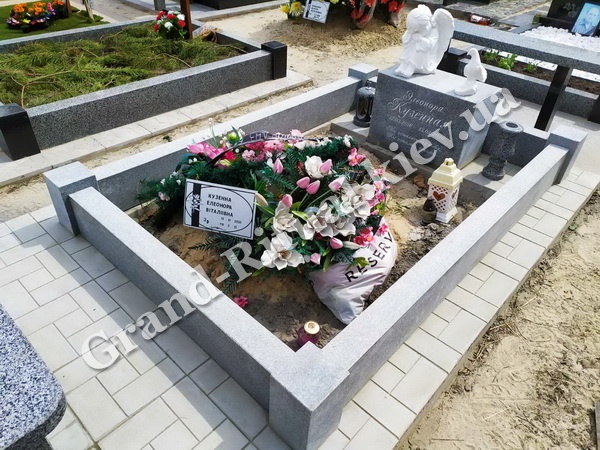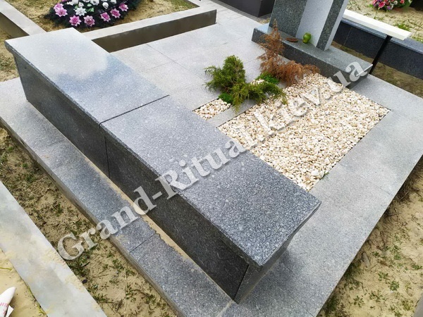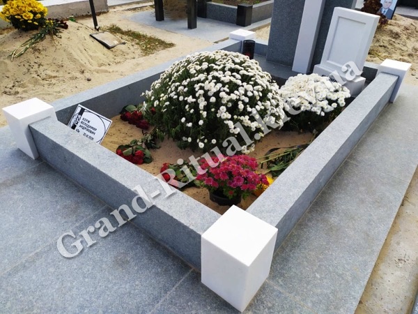 Цоколь на могиле используется для следующих целей: формирует общую картину места, определяет конкретную территорию (размеры) для красивого облагораживания могилы, а также выполняет функции фундамента для последующего монтажа ритуальных элементов и деталей памятника, которыми будет облагорожена могила.